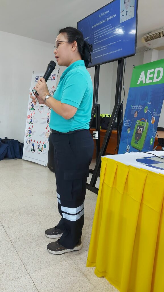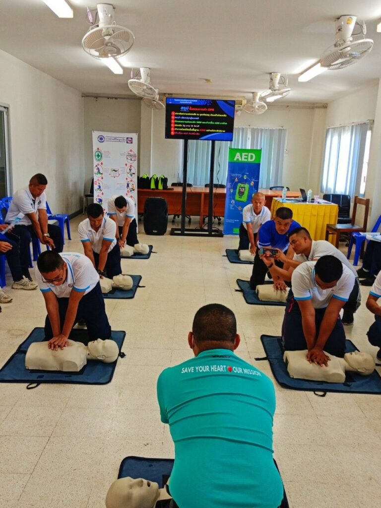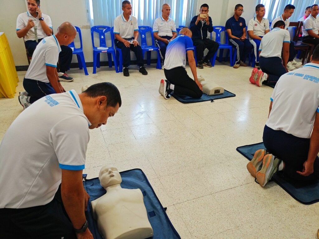 เมื่อ ๒๐ พ.ย.๖๖ นาวาตรีหญิง ศิรประภา สุขวิวัฒนพร หัวหน้าแผนกเวชศาสตร์กู้ชีพ กลุ่มงานการพยาบาลอุบัติเหตุและฉุกเฉิน รพ.สมเด็จพระนางเจ้าสิริกิติ์ พร. ฝ่ายการพยาบาล และทีมวิทยากรอบรมให้ความรู้และฝึกปฏิบัติ การปฐมพยาบาลเบื้องต้น, การช่วยฟื้นคืนชีพขั้นพื้นฐาน (CPR), การใช้เครื่องฟื้นคืนคลื่นหัวใจด้วยไฟฟ้าแบบอัตโนมัติ (AED) ให้แก่ กำลังพล กยฝ.กร. โดยมี น.อ.อดิเทพ ทิศาดลดิลก รองเสนาธิการ กยฝ.กร. เป็นประธานและเข้าร่วมฯ ณ ห้องประชุม กยฝ.กร. / รพ.สมเด็จพระนางเจ้าสิริกิติ์ พร. / By ข่าวผู้บังคับบัญชา จำนวนคนดู : 3