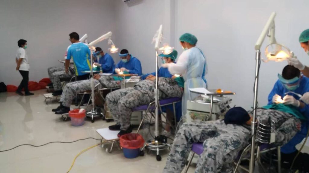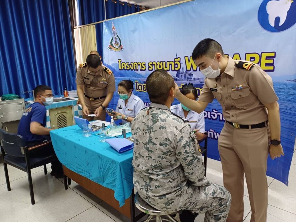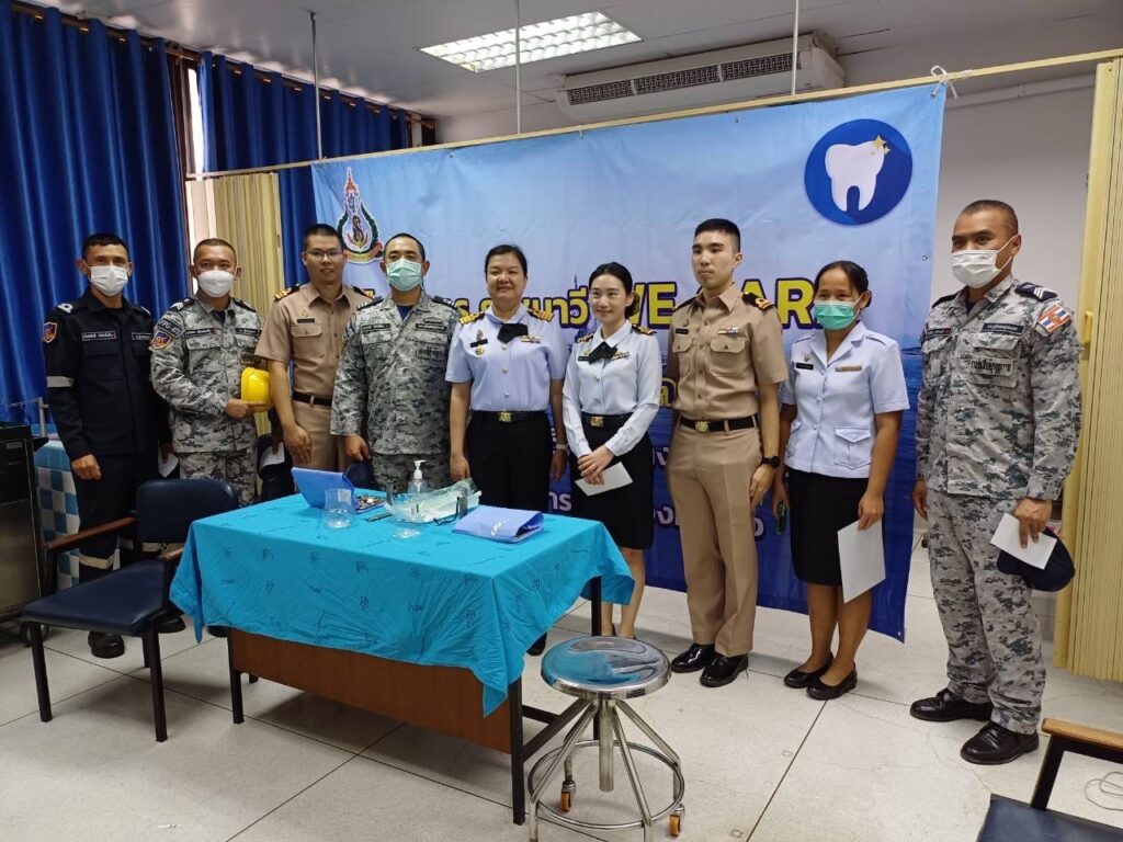 เมื่อ ๒๔ ม.ค.๖๗ น.อ.หญิง จารุวรรณ เภกะนันทน์ หน.กลุ่มงานทันตกรรมรพ.สมเด็จพระนางเจ้าสิริกิติ์ พร. นำทีมทันตแพทย์และพยาบาล จัดทำโครงการ We Care โดยทำการตรวจสุขภาพฟัน ให้แก่กำลังพล ร.ล.ภูมิพลอดุลยเดช ก่อนไปปฏิบัติหน้าที่ให้การสนับสนุนการฝึกภาคปฏิบัติในทะเลต่างประเทศของนักเรียนนายเรือ ณ บริเวณอู่แห้ง อรม.อร. อ.สัตหีบ จว.ชลบุรี / รพ.สมเด็จพระนางเจ้าสิริกิติ์ พร. / By ข่าวผู้บังคับบัญชา จำนวนคนดู : 10
