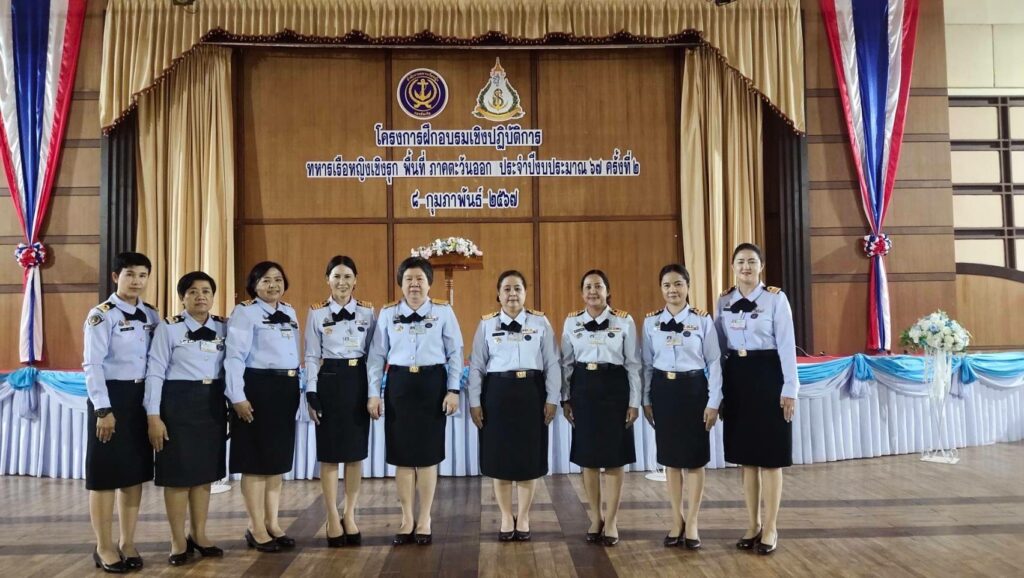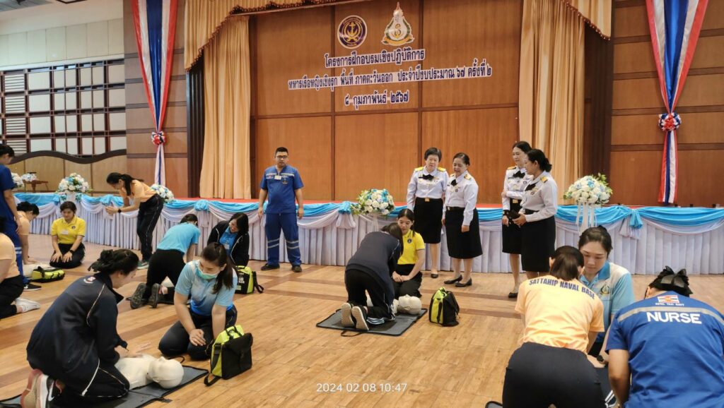 ระหว่าง ๗ – ๘ ก.พ.๖๗ พล.ร.ต.หญิง กรองทิพย์ ศิริไล หน.สน.ทร.หญิง ฝึกอบรมเชิงปฏิบัติการทหารเรือหญิงเชิงรุก ประจำปีงบประมาณ ๒๕๖๗ ครั้งที่๒ ในพื้นที่ภาคตะวันออก เพื่อให้กำลังพลหญิงได้รับความรู้การปฐมพยาบาลการกู้ชีพขั้นพื้นฐาน CPR การใช้เครื่องฟื้นคืนชีพคลื่นหัวใจด้วยไฟฟ้า AED การฝึกอาชีพเสริมของกำลังพลหญิงในหน่วยพื้นที่ การฝึกบุคคลท่ามือเปล่าท่าพระราชทาน ณ ห้องภูหลวง หอประชุม รพ.สมเด็จพระนางเจ้าสิริกิติ์ พร. / รพ.สมเด็จพระนางเจ้าสิริกิติ์ พร. / By ข่าวผู้บังคับบัญชา จำนวนคนดู : 6