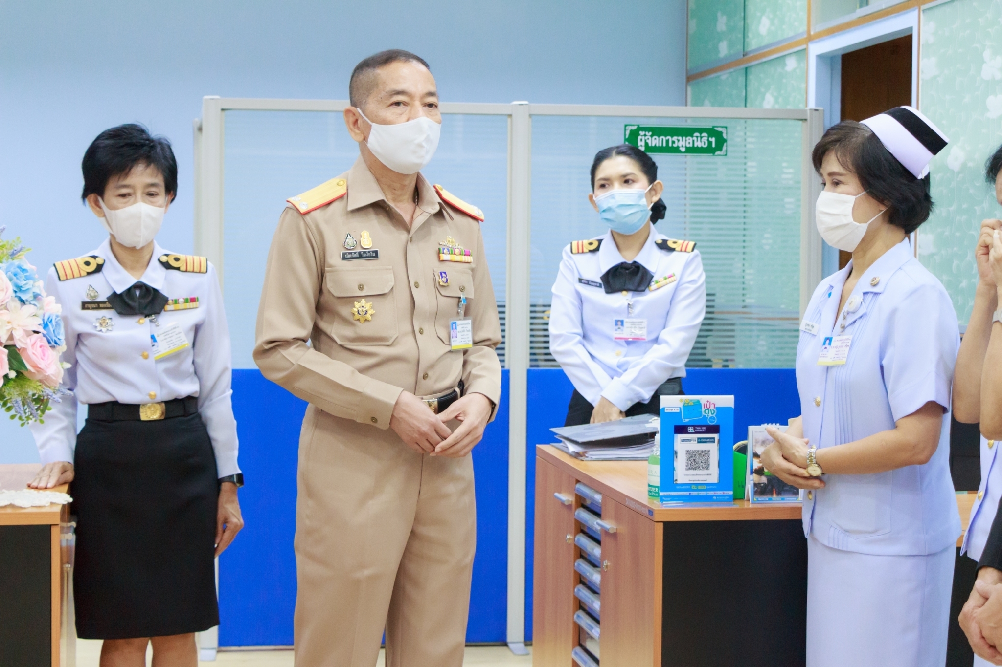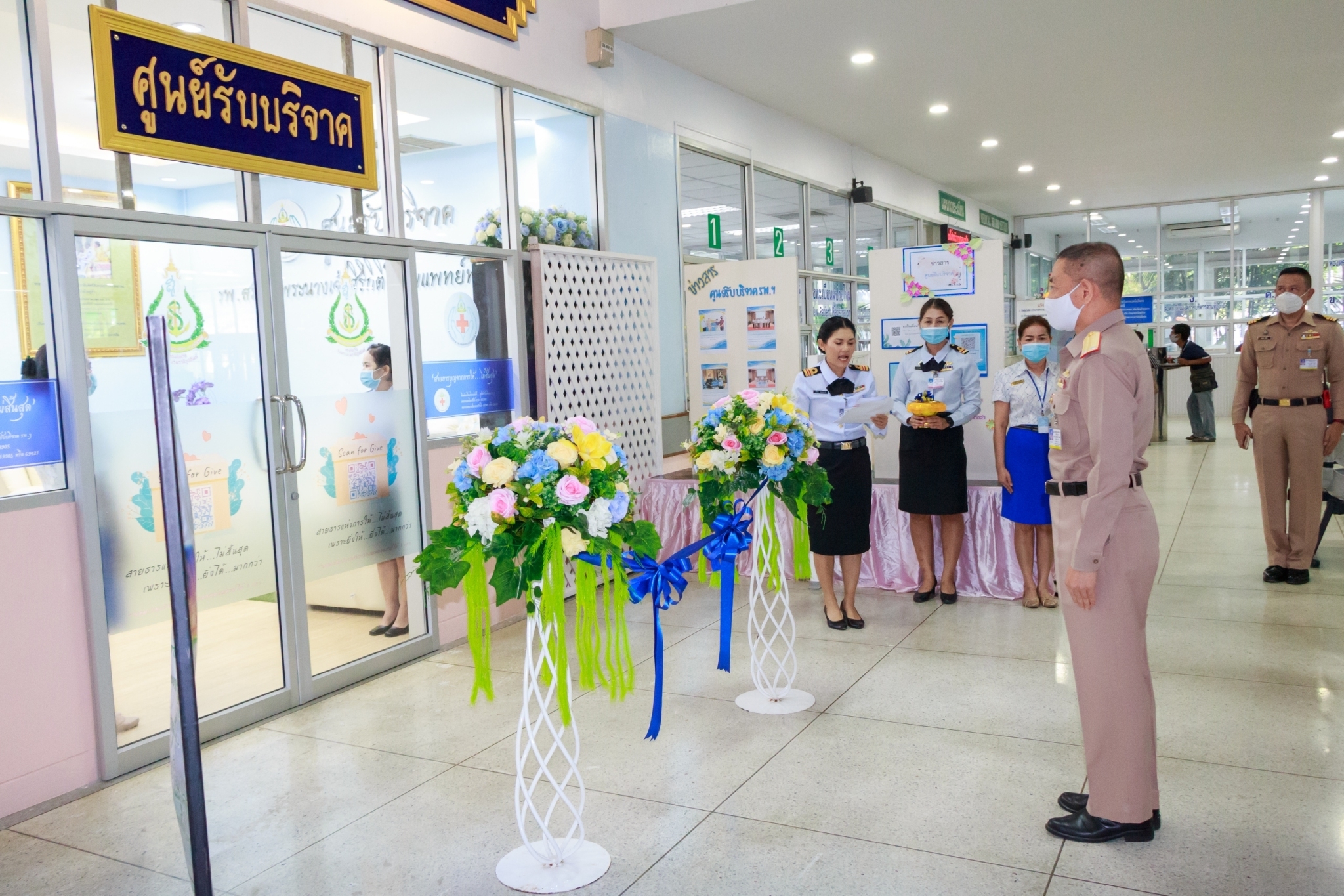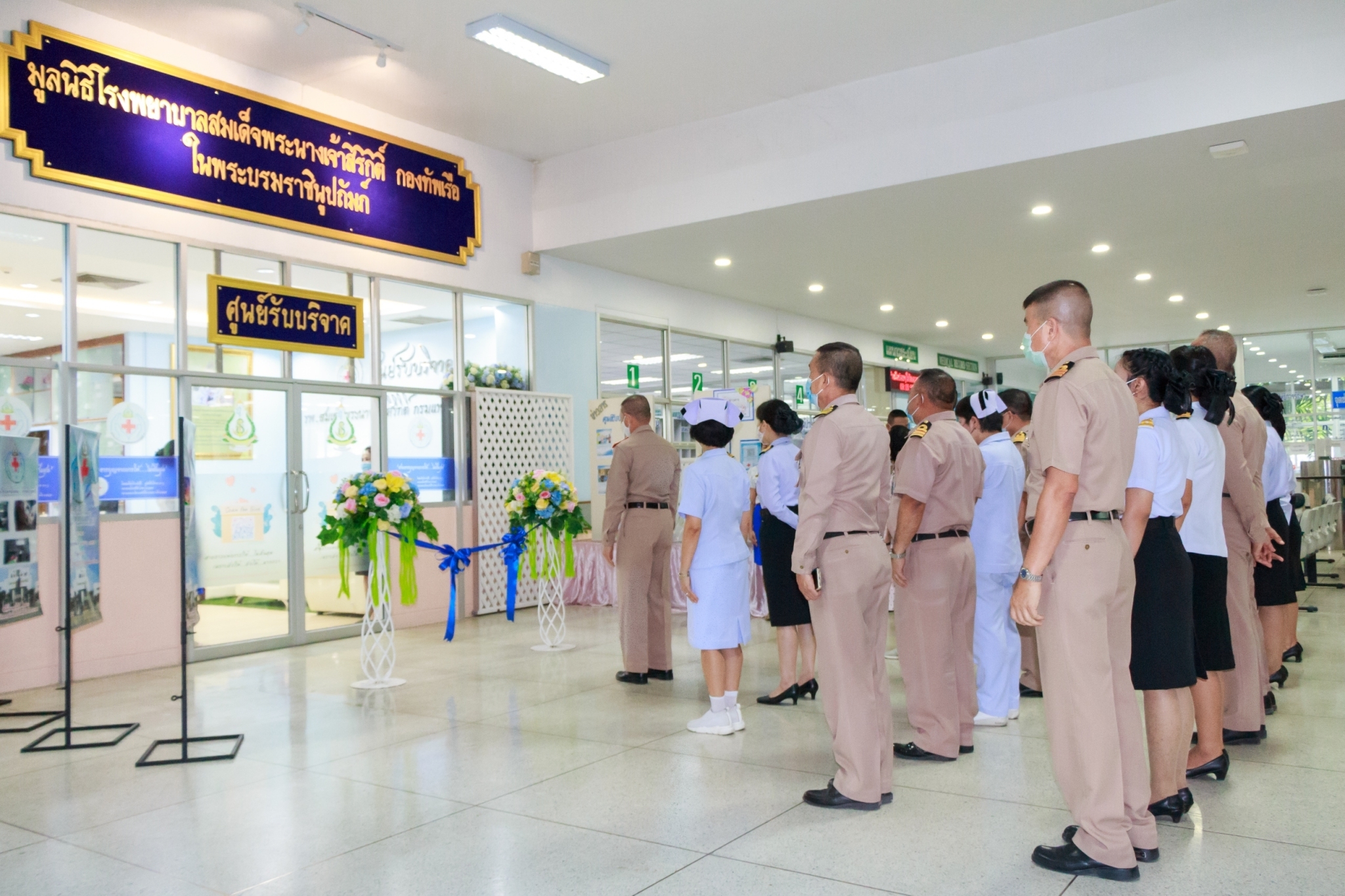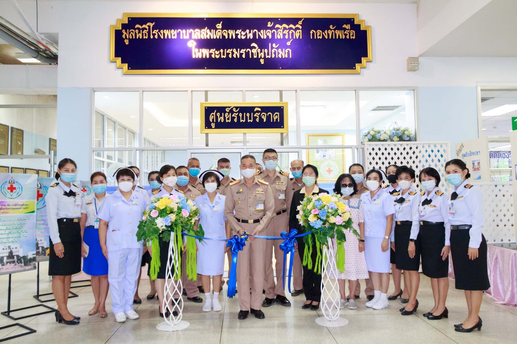 พล.ร.ต.เกิดศักดิ์ วีระโยธิน ผอ.รพ.สมเด็จพระนางเจ้าสิริกิติ์ พร. เป็นประธานเปิดห้องศูนย์รับบริจาค และสำนักงานมูลนิธิโรงพยาบาลสมเด็จพระนางเจ้าสิริกิติ์ กองทัพเรือ ในพระบรมราชินูปถัมภ์ โดยมี น.ต.หญิง สุจีรา ธัญญชาติ หน.ศูนย์รับบริจาค กล่าวรายงาน พร้อมด้วยคณะผู้บริหารระดับสูงของ รพ.ฯ ร่วมแสดงความยินดี ณ ห้องโถงอาคารพิเคราะห์และบำบัดโรค เมื่อ ๒๘ สิงหาคม ๒๕๖๓