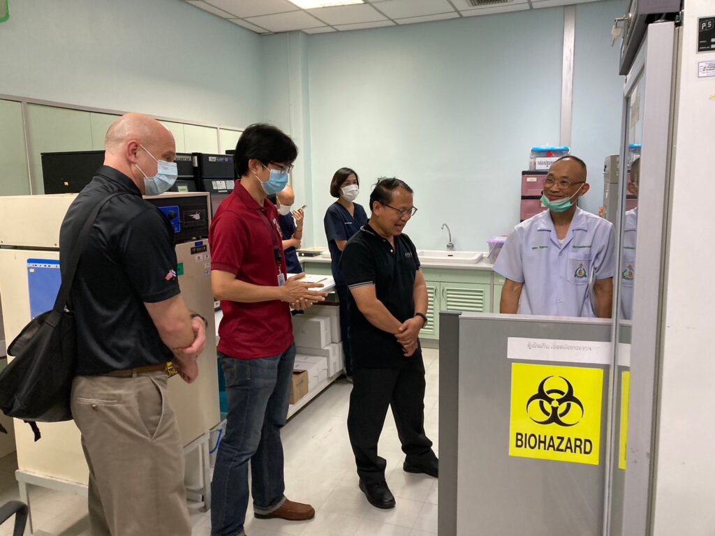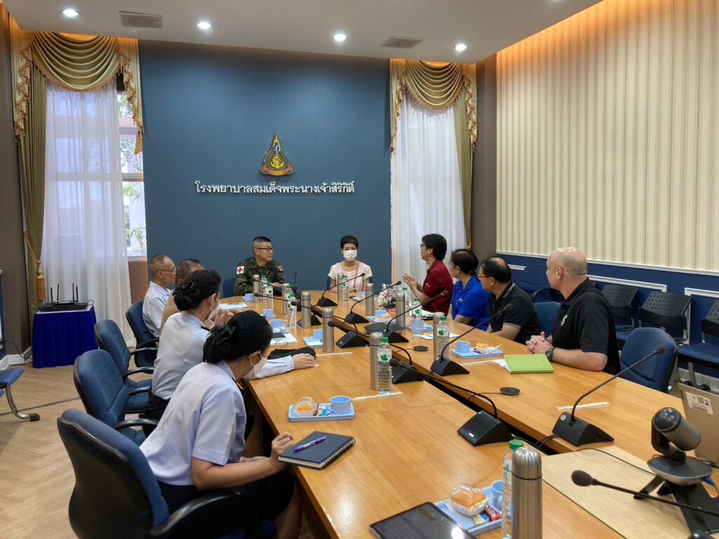 เมื่อ ๒๐ ก.พ.๖๗ น.อ.พัลลภ สุภากรณ์ รอง ผอ.รพ.สมเด็จพระนางเจ้าสิริกิติ์ พร. ให้การต้อนรับ พันตรี แดเนียล เอ็ม บูโดรว์ เจ้าหน้าที่หน่วยวิจัยฝ่ายสหรัฐ และคณะฯ ในโอกาสขอเข้าเยี่ยมสำรวจและขอเข้าใช้พื้นที่ห้องจุลินทรีย์ รพ.สมเด็จพระนางเจ้าสิริกิติ์ พร. เพื่อเฝ้าระวังและทำการเก็บตัวอย่างเชื้อโรคอุจจาระร่วงและโรคระบบทางเดินหายใจกับทหารอเมริกาในการฝึก Cobra Gold 2024 พื้นที่ จว.ชลบุรี ณ ห้องประชุม ๔ อาคารอำนวยการ รพ.สมเด็จพระนางเจ้าสิริกิติ์ พร. / รพ.สมเด็จพระนางเจ้าสิริกิติ์ พร. / By ข่าวผู้บังคับบัญชา จำนวนคนดู : 5