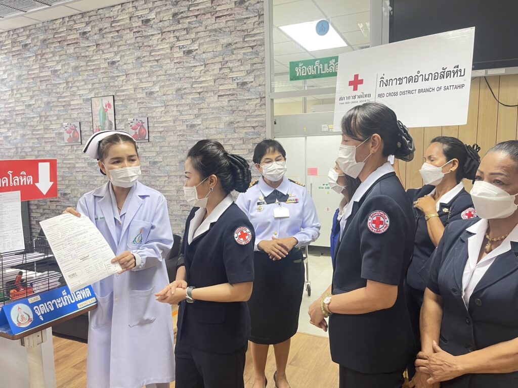 เมื่อ ๒๐ ก.พ.๖๗ น.อ.หญิง อรัญญา เชยดี รอง ผอ.รพ.สมเด็จพระนางเจ้าสิริกิติ์ พร. ฝ่ายการพยาบาล ให้การต้อนรับ คุณกนกพร ขันธหิรัญ ภริยานายอำเภอสัตหีบ นายกกิ่งกาชาดอำเภอสัตหีบ และคณะชมรมแม่บ้านมหาดไทยจังหวัดชลบุรี ในโอกาสมาตรวจเยี่ยมเพื่อเป็นขวัญกำลังใจ ให้แก่ผู้ที่มาบริจาคโลหิต รพ.สมเด็จพระนางเจ้าสิริกิติ์ พร. / รพ.สมเด็จพระนางเจ้าสิริกิติ์ พร. / By ข่าวผู้บังคับบัญชา จำนวนคนดู : 4