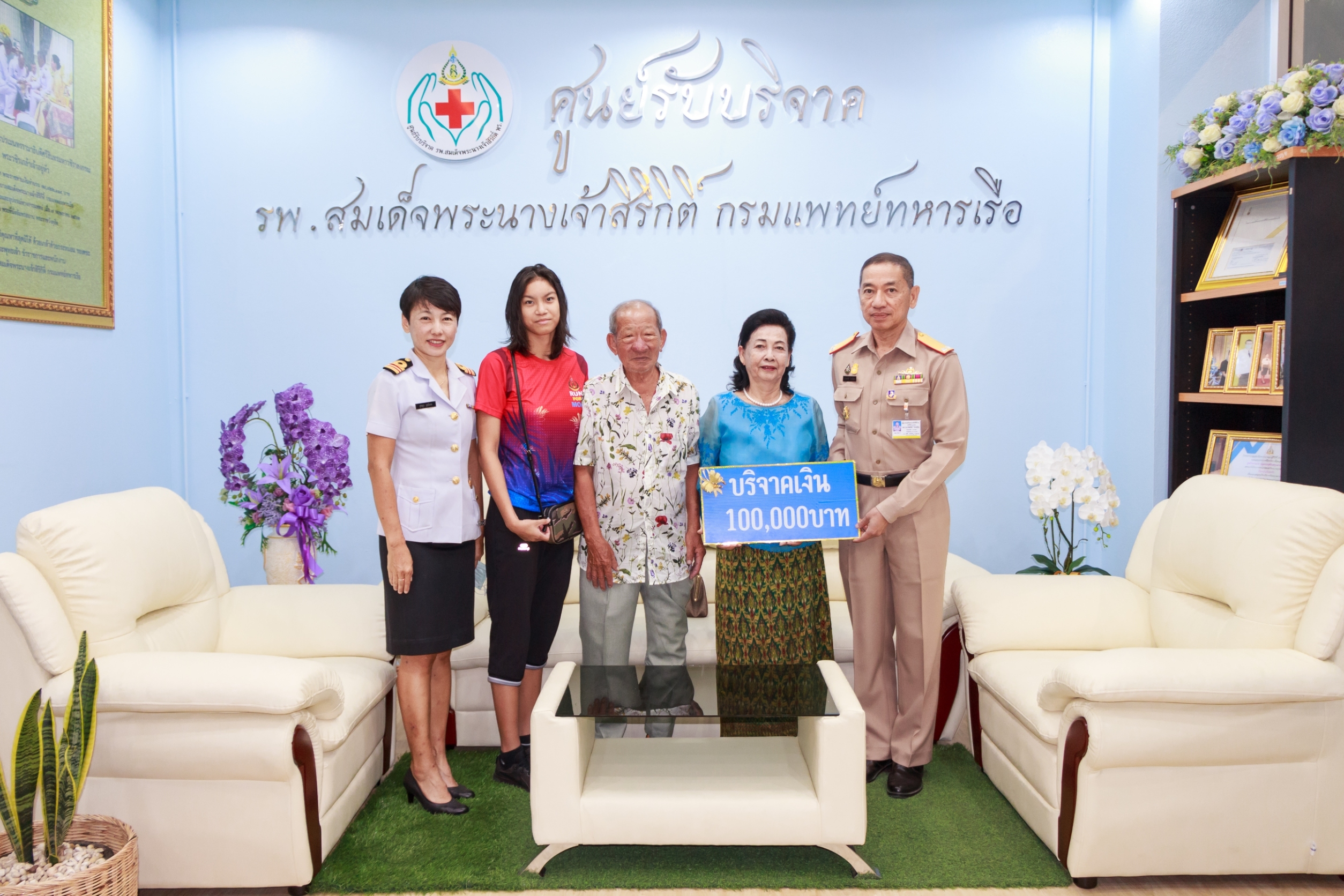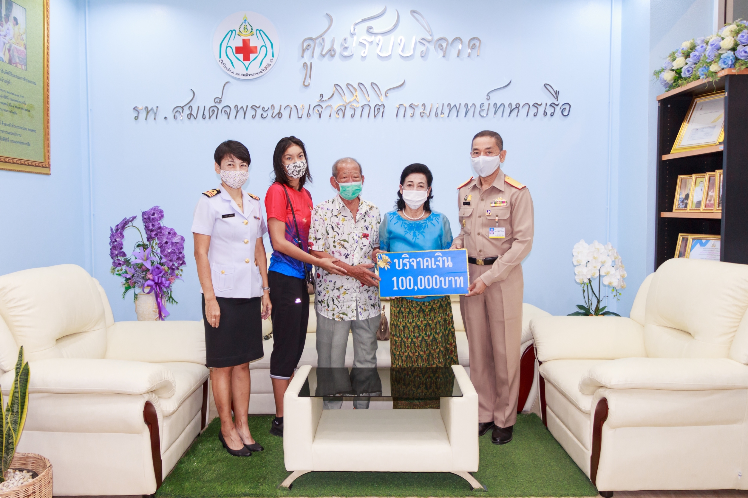 พล.ร.ต.เกิดศักดิ์ วีระโยธิน ผอ.รพ.สมเด็จพระนางเจ้าสิริกิติ์ พร. รับมอบเงินบริจาคจำนวน ๑๐๐,๐๐๐ บาท จาก คุณเติมพงษ์ – คุณฉวี โชควงศ์ประดิษฐ์ และครอบครัว เพื่อนำไปจัดซื้อเครื่องมือและอุปกรณ์ทางการแพทย์ ณ ศูนย์รับบริจาค โรงพยาบาลสมเด็จพระนางเจ้าสิริกิติ์ กรมแพทย์ทหารเรือ เมื่อ ๑๐ กันยายน ๒๕๖๓