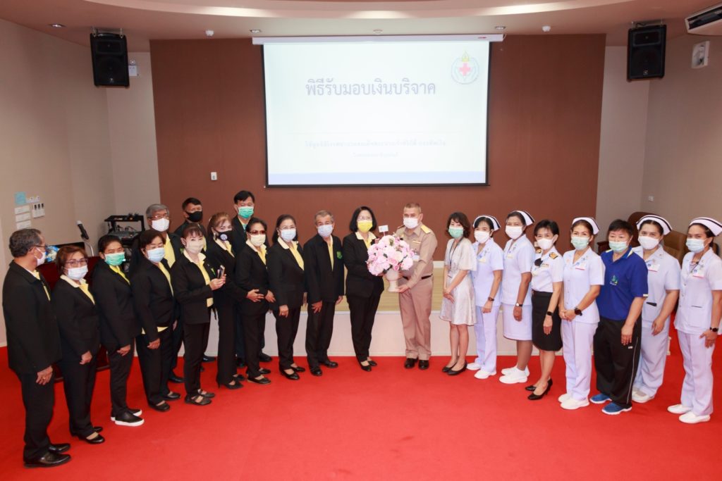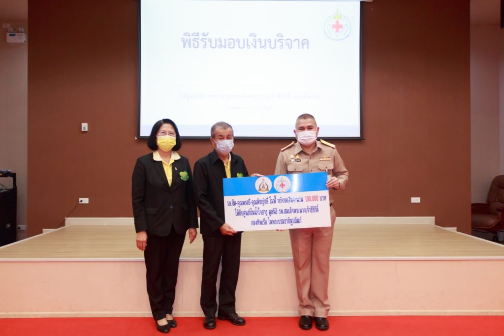 พล.ร.ต.ชลธร สุวรรณกิตติ ผอ.รพ.สมเด็จพระนางเจ้าสิริกิติ์ พร. รับมอบเงินบริจาคจำนวน ๑๐๐,๐๐๐ บาท จาก ร.อ.ชิต-คุณพรศรี-คุณพิชญ์ชลี โมฬี ให้กับ ศูนย์ปันน้ำใจสาธุ มูลนิธิ รพ.สมเด็จพระนางเจ้าสิริกิติ์ กองทัพเรือ ในพระบรมราชินูปถัมภ์ ณ ห้องประชุม ๒๐ ปี รพ.ฯ