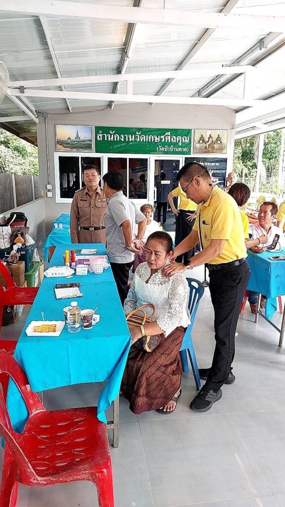 เมื่อ ๒๑ ต.ค.๖๗ พล.ร.ต.พัฒนชัย เฉลิมวรรณ์ ผอ.รพ.สมเด็จพระนางเจ้าสิริกิติ์ พร. และ น.อ.ธีรศักดิ์ มหามงคล รองผู้อำนวยการกองสุขภาพจิต รพ.ฯ พร้อมบุคลากรของรพ.ฯ ร่วมงานมุทิตาสักการะ และออกหน่วยแพทย์เคลื่อนที่ตรวจรักษาโรคทั่วไป ฝังเข็ม ให้แก่พระภิกษุสามเณร และประชาชนทั่วไป ในงานทอดผ้าป่าสามัคคีเพื่อจัดซื้อเครื่องมือและอุปกรณ์ทางการแพทย์ รพ.สมเด็จพระนางเจ้าสิริกิติ์ ฯ ณ วัดป่าบ้านตาด  จว.อุดรธานี