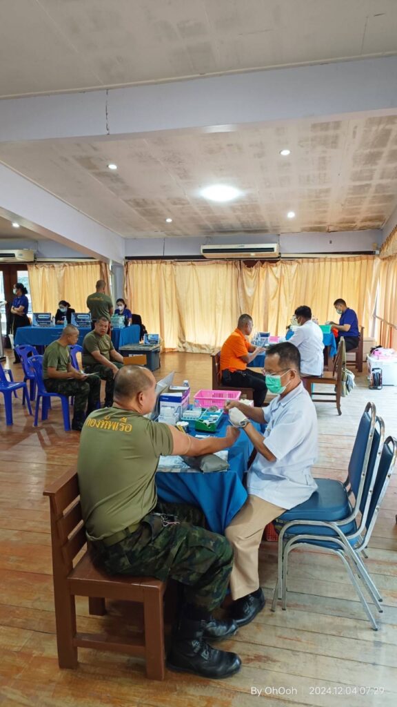 เมื่อ ๔ ธ.ค.๖๗ กลุ่มงานบริการสุขภาพเคลื่อนที่ รพ.สมเด็จพระนางเจ้าสิริกิติ์ พร. ดำเนินการออกตรวจสุขภาพประจำปีงบประมาณ ๒๕๖๘ ให้แก่กำลังพลกองทัพเรือ ณ ค่ายมหาสุรสิงหนาท กองพันทหารราบที่ ๗ จว.ระยอง / รพ.สมเด็จพระนางเจ้าสิริกิติ์ พร. / By ข่าวผู้บังคับบัญชา จำนวนคนดู : 2