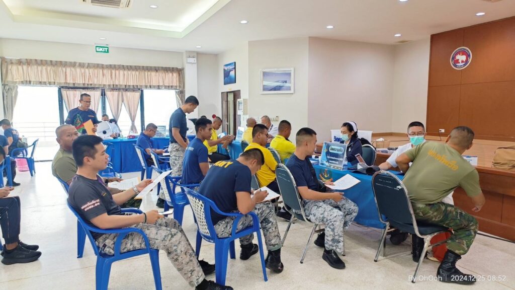 เมื่อ ๒๕ ธ.ค.๖๗ กลุ่มงานบริการสุขภาพเคลื่อนที่ รพ.สมเด็จพระนางเจ้าสิริกิติ์ พร. ออกตรวจสุขภาพประจำปีงบประมาณ๖๘ ให้แก่กำลังพลกองทัพเรือในส่วนของ ฐานส่งกำลังบำรุงทหารเรือตราด รวมถึงพัน ร.๖ กรม ร.๒ พล.นย. ณ ห้องประชุมช้างธรรมชาติ ฐานส่งกำลังบำรุงทหารเรือตราด / รพ.สมเด็จพระนางเจ้าสิริกิติ์ พร. / By ข่าวผู้บังคับบัญชา จำนวนคนดู : 9