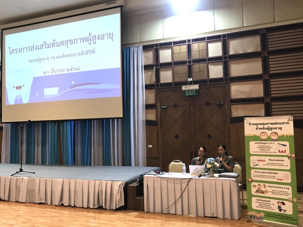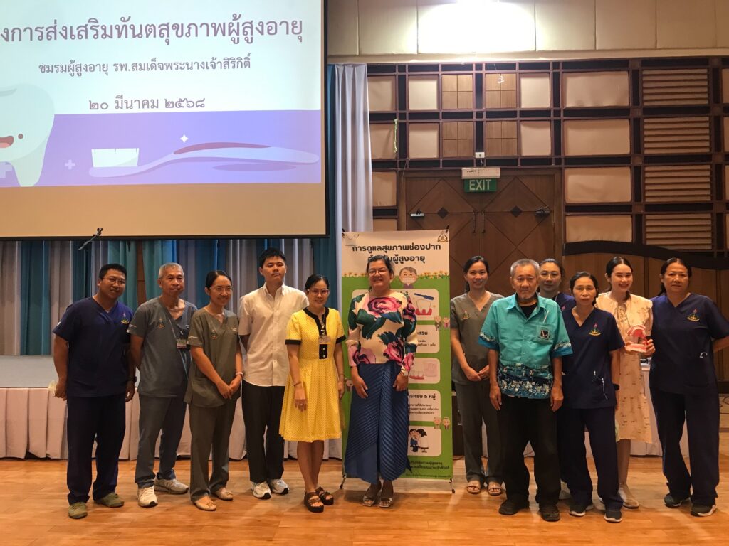 เมื่อ ๒๐ มี.ค.๖๘ กลุ่มงานทันตกรรม รพ.สมเด็จพระนางเจ้าสิริกิติ์ พร. ดำเนินโครงการส่งเสริมทันตสุขภาพผู้สูงอายุ นำโดย น.ต.หญิง พิมพ์ธีรา พิบูลทิพย์ ทันตแพทย์ กองทันตกรรมที่ ๒ ศทก.พร. พร้อมด้วย และเจ้าหน้าที่ ให้บริการตรวจสุขภาพช่องปากเพื่อคัดกรองสุขภาพทางทันตกรรมของกลุ่มผู้สูงอายุ ชมรมผู้สูงอายุ รพ.สมเด็จพระนางเจ้าสิริกิติ์ พร. โดยมี น.อ.หญิง ชัชชญา เตียวสุวรรณ อายุรแพทย์ระบบประสาท หน.กลุ่มงานเวชศาสตร์ครอบครัว รพ.ฯ และคณะฯ ให้การต้อนรับ ณ ห้องคลองไผ่ หอประชุม รพ.สมเด็จพระนางเจ้าสิริกิติ์ พร.