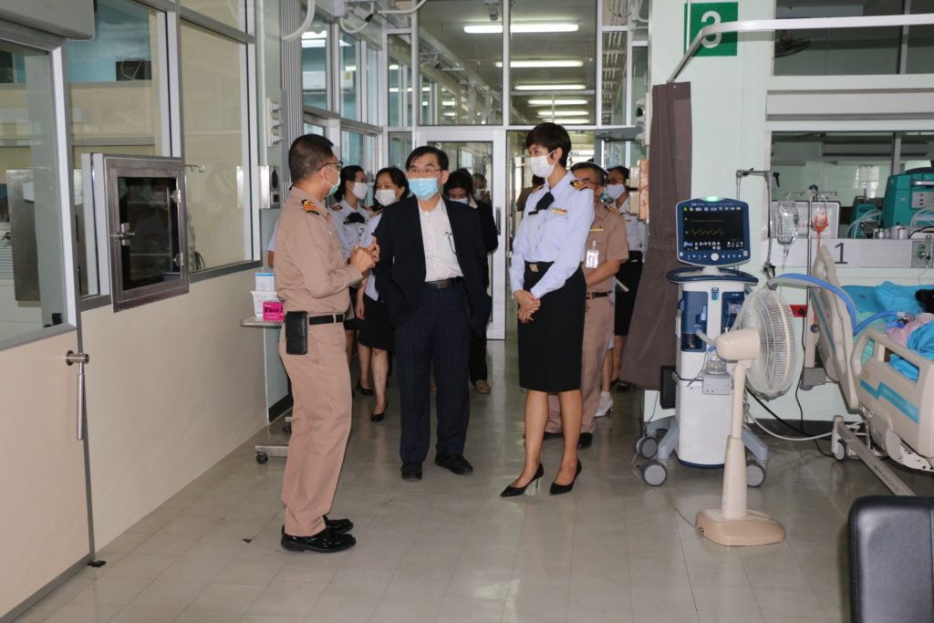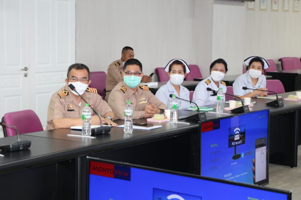 ๒๖ ต.ค.๖๓ พล.ร.ต.ชลธร สุวรรณกิตติ ผอ.รพ.สมเด็จพระนางเจ้าสิริกิติ์ พร. ให้การต้อนรับ พล.ร.ท.วิชัย มนัสศิริวิทยา จก.พร., นพ.พีรพล สุทธิวิเศษศักดิ์ ที่ปรึกษาพิเศษด้านสาธารณสุข คณะกรรมการนโยบายเขตพัฒนาพิเศษภาคตะวันออก และคณะ เข้าศึกษาดูงานและหารือเกี่ยวกับความพร้อมของ รพ.ฯ สำหรับการพัฒนายกระดับระบบบริการสุขภาพรองรับโรคอุบัติใหม่ รวมทั้งเยี่ยมชมพื้นที่ของโรงพยาบาล ณ ห้องประชุม ๑ อาคารอำนวยการ