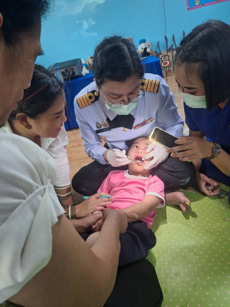 เมื่อ ๒๖ มี.ค.๖๘ กลุ่มงานทันตกรรม รพ.สมเด็จพระนางเจ้าสิริกิติ์ พร. จัดทันตกรรมสัญจร ในโครงการ “เด็กปฐมวัยฟันดีที่กร.” ในการนี้ น.อ.หญิง จารุวรรณ เภกะนันทน์ หน.กลุ่มงานทันตกรรม รพ.ฯ พร้อมด้วย น.ต.หญิง ปิ่นขวัญ ปัดไธสง ทันตแพทย์เฉพาะทางสำหรับเด็ก รพ.ฯ และ น.ต.อธิคม ตันติมหานนท์ ทันตแพทย์ผู้เชี่ยวชาญ สาขาทันตกรรมสำหรับเด็ก รพ.ฯ เข้าร่วมโครงการฯ ณ สถานรับเลี้ยงเด็กปฐมวัย กองเรือยุทธการ / รพ.สมเด็จพระนางเจ้าสิริกิติ์ พร. / By ข่าวผู้บังคับบัญชา จำนวนคนดู : 8
