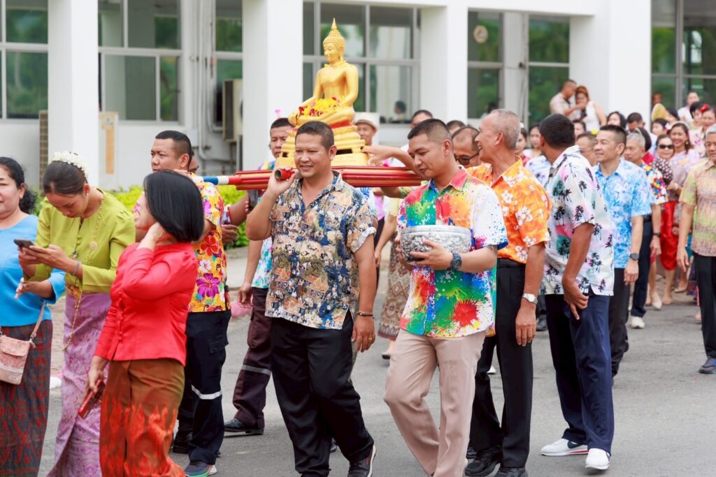 เมื่อ ๑๐ เม.ย.๖๘ พล.ร.ต.พัฒนชัย เฉลิมวรรณ์ ผอ.รพ.สมเด็จพระนางเจ้าสิริกิติ์ พร. นำคณะผู้บริหาร กราบไหว้ สักการะ สิ่งศักดิ์สิทธิ์ ภายใน รพ.ฯ เพื่อความเป็นสิริมงคล เนื่องในวันสงกรานต์ วันขึ้นปีใหม่ไทย สรงสราญวิถีไทยสุขใจวันสงกรานต์ โดยมี บุคลากร รพ.ฯ เข้าร่วมพิธีฯ ณ อาคารบริการระบบสุขภาพ รพ.สมเด็จพระนางเจ้าสิริกิติ์ พร.