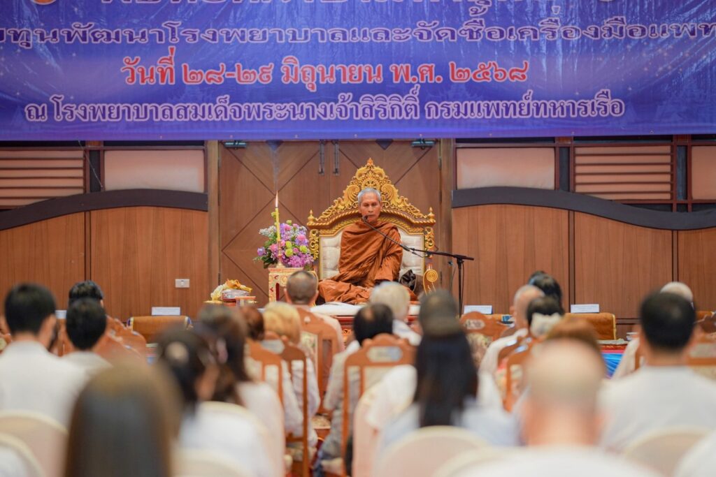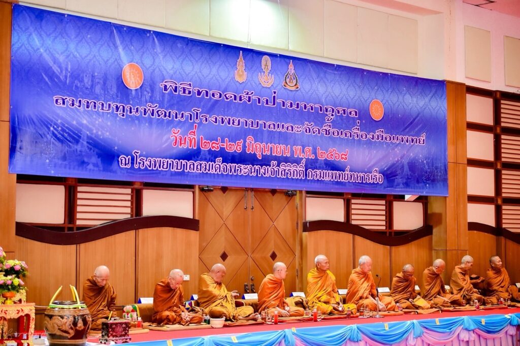 ระหว่าง ๒๘-๒๙ มิ.ย.๖๘ พล.ร.อ.จิรพล ว่องวิทย์ ผบ.ทร. พล.ร.ต.หญิง ดร.ทพญ.จีระวัฒน์ กฤษณพันธ์ ว่องวิทย์ นายกสมาคมภริยาทหารเรือ และ พล.ร.อ.ณัฐพล เดี่ยววานิช ผบ.กร. ร่วมเป็นประธานในพิธีทอดผ้าป่ามหากุศลเพื่อสมทบทุนจัดซื้อเครื่องมือแพทย์ รพ.สมเด็จพระนางเจ้าสิริกิติ์ พร. ในการนี้ พระราชวชิรธรรมาจารย์ วิ.(สุธรรม สุธัมโม) เจ้าอาวาสวัดป่าบ้านตาด จว.อุดรธานี เป็นประธานฝ่ายสงฆ์ และ พล.ร.ต.พัฒนชัย เฉลิมวรรณ์ ผอ.รพ.สมเด็จพระนางเจ้าสิริกิติ์ พร. ประธานดำเนินงานฯ โดยมี ผู้บังคับบัญชาของ ทร. คณะผู้บริหาร ข้าราชการ ลูกจ้าง พนักงานราชการ รพ.ฯ และผู้มีจิตศรัทธา เข้าร่วมพิธีฯ ณ หอประชุม รพ.ฯ / รพ.สมเด็จพระนางเจ้าสิริกิติ์ พร. / By ข่าวผู้บังคับบัญชา จำนวนคนดู : 1