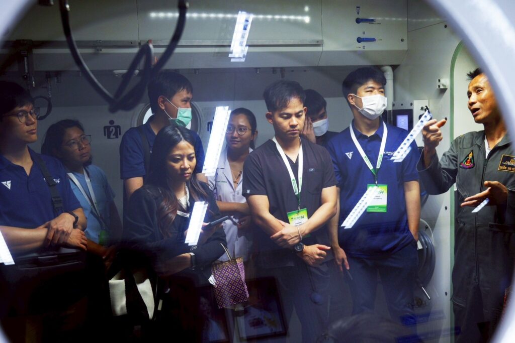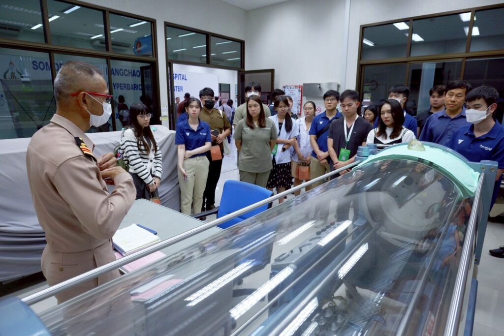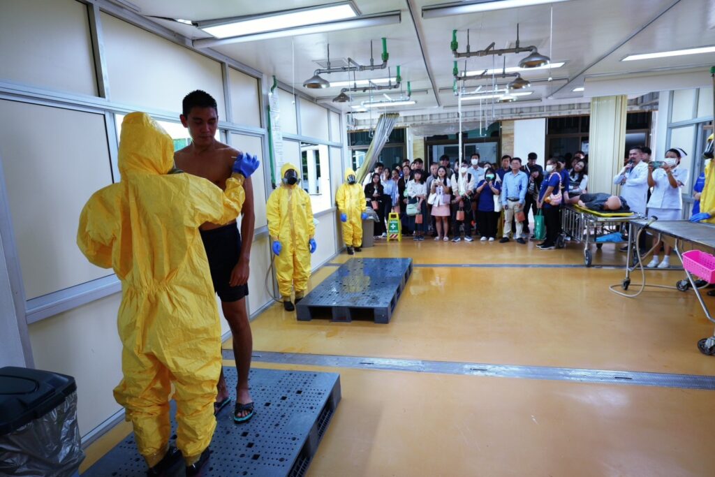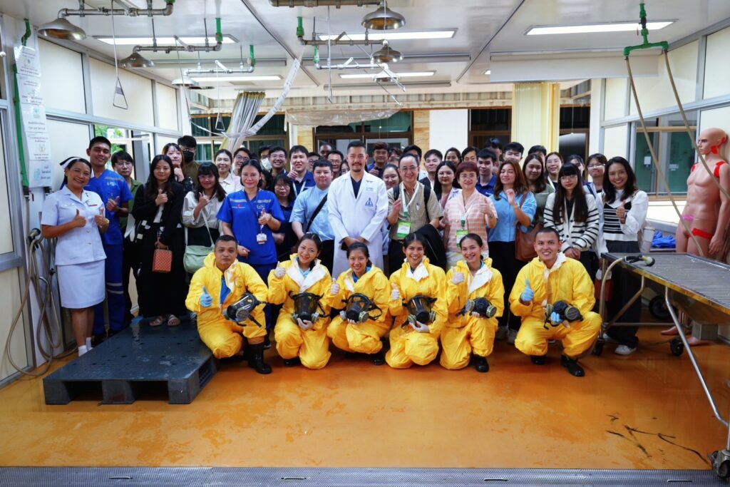 เมื่อ ๓ ก.ค.๖๘ น.อ.พัลลภ สุภากรณ์ รอง ผอ.รพ.สมเด็จพระนางเจ้าสิริกิติ์ พร. ให้การต้อนรับคณาจารย์และแพทย์ผู้เข้าอบรมหลักสูตร “อาชีวเวชศาสตร์พื้นฐานสำหรับแพทย์” รุ่นที่ ๑๔ คณะแพทยศาสตร์ มหาวิทยาลัยบูรพา โดยมี วิทยากรจากกลุ่มงานเวชศาสตร์ฉุกเฉินฯ บรรยายในหัวข้อ “ความรู้เบื้องต้นเกี่ยวกับอุบัติภัยสารเคมี” วิทยากรจากกลุ่มงานการพยาบาลอุบัติเหตุและฉุกเฉินฯ (สาธิตการล้างตัวผู้ได้รับอุบัติภัยทางสารเคมี) และวิทยากรจากศูนย์เวชศาสตร์ความดันบรรยากาศสูงฯ บรรยายในหัวข้อ “โรคจากความกดอากาศและการบำบัดด้วยออกซิเจนแรงดันสูง” ณ ห้องประชุม ๒๐ ปี รพ.ฯ / รพ.สมเด็จพระนางเจ้าสิริกิติ์ พร. / By ข่าวผู้บังคับบัญชา จำนวนคนดู : 1