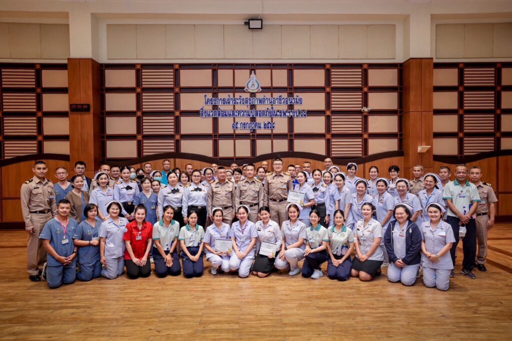 เมื่อ ๑๕ ก.ค.๖๘ พล.ร.ต.พัฒนชัย เฉลิมวรรณ์ ผอ.รพ.สมเด็จพระนางเจ้าสิริกิติ์ พร. เป็นประธานเปิดกิจกรรมและมอบรางวัลแก่ผู้ชนะการประกวด “โครงการอบรมเฝ้าระวังสุขภาพอาชีวอนามัย สิ่งแวดล้อม และความปลอดภัยในโรงพยาบาล” ประจำปีงบประมาณ ๒๕๖๘ จัดโดย กลุ่มงานอาชีวเวชกรรม รพ.ฯ ณ ห้องภูหลวง หอประชุม รพ.สมเด็จพระนางเจ้าสิริกิติ์ พร. / รพ.สมเด็จพระนางเจ้าสิริกิติ์ พร. / By ข่าวผู้บังคับบัญชา จำนวนคนดู : 0