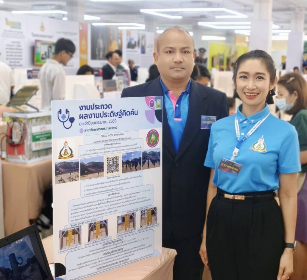 ระหว่าง ๑-๒ ก.ย.๖๘ สำนักงานวิจัยและการจัดการความรู้ รพ.สมเด็จพระนางเจ้าสิริกิติ์ พร. นำทีมบุคลากรเข้าร่วม “งานประกวดผลงานประดิษฐ์คิดค้น ประจำปีงบประมาณ ๒๕๖๙” ) โดยมี ว่าที่ น.อ.เรวัติ ทับแสง และ น.ต.หญิง วรันธร พรมสนธิ์ นำเสนอผลงาน ม่านละอองน้ำป้องกันโรคลมร้อน (Curtain Sprayer For Prevent Heat Stroke ส่งเข้าประกวด โดยการคัดเลือกผลงานการประกวดในครั้งนี้จะนำไปสู่เวที Research Expo ๒๐๒๖ โรงแรมเซ็นทาราแกรนด์ และบางกอกคอนเวนชั่นเซ็นเตอร์ เซ็นทรัลเวิร์ล กรุงเทพฯ ต่อไป  ณ สำนักงานการวิจัยแห่งชาติ (วช.)