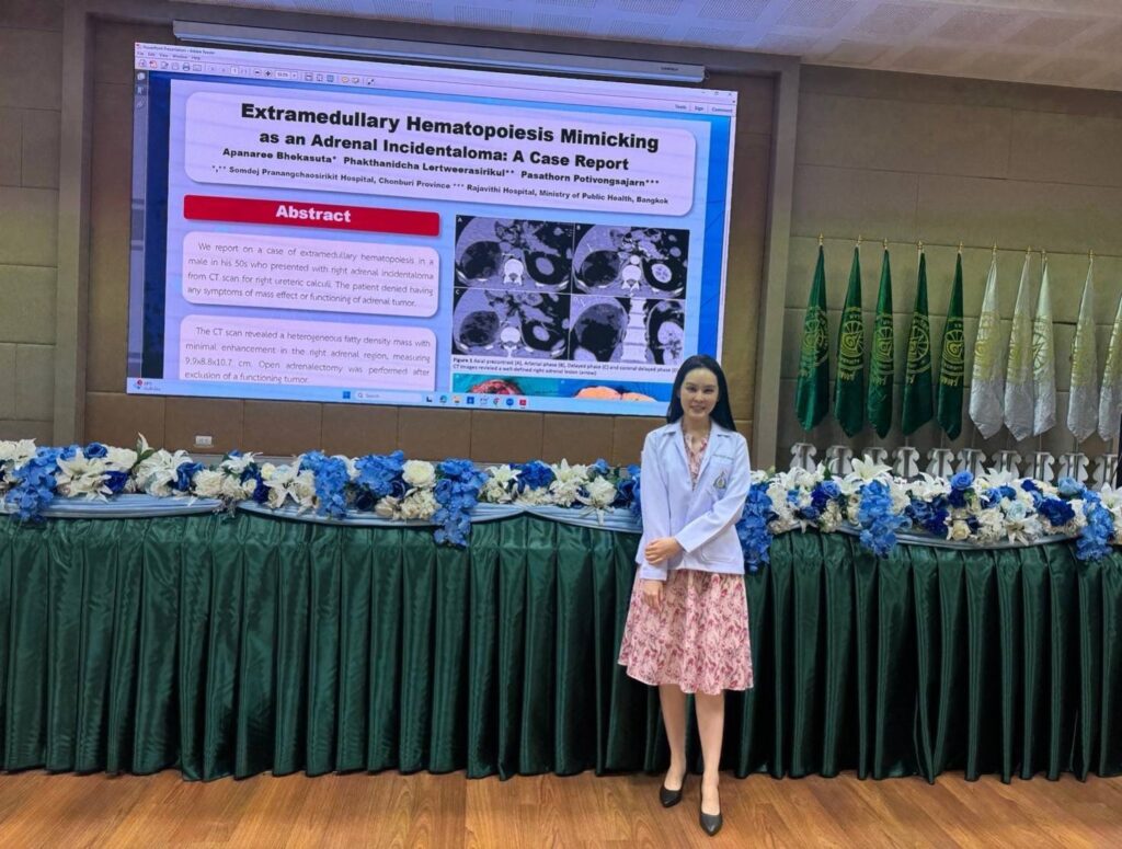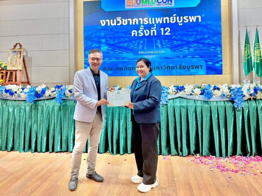 ระหว่าง ๑-๒ ก.ย.๖๘ สำนักงานวิจัยและการจัดการความรู้ รพ.ฯ นำบุคลากร รพ.ฯ เข้าร่วมการประกวดผลงานวิจัย ในงานประชุมวิชาการแพทย์บูรพา ครั้งที่ ๑๒ โดยผลงานที่ได้รับรางวัล ๒ รางวัล ดังนี้ รางวัลชนะเลิศ นำเสนอผลงานรูปแบบโปสเตอร์ (Poster Presentation) ประเภทผลงานวิจัย โดย น.ท.หญิง อาภานรี เภกะสุต พญ.ภัคธนิศร์ชา เลิศวีระศิริกุล และ พญ.พสธร โพธิวงศาจารย์ เรื่อง Mimicking as an Adrenal Incidentaloma: A Case Report Extramedullary Hematopoiesis รางวัลรองชนะเลิศอันดับ ๑ นำเสนอผลงานรูปแบบบรรยาย (Oral Presentation) ประเภทผลงานวิจัย โดย น.ต.หญิง วรรณนิศา จำปาเทศ เรื่อง ผลของโปรแกรมการฟื้นฟูสมรรถภาพหัวใจ โดยการเคลื่อนไหวร่างกายโดยเร็ว ต่ออาการเหนื่อยล้า และระดับความวิตกกังวลของผู้ป่วยหลังผ่าตัดหัวใจแบบเปิด ณ คณะแพทยศาสตร์ มหาวิทยาลัยบูรพา / รพ.สมเด็จพระนางเจ้าสิริกิติ์ พร. / By ข่าวผู้บังคับบัญชา จำนวนคนดู : 0