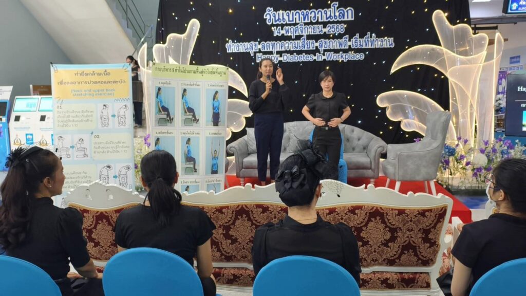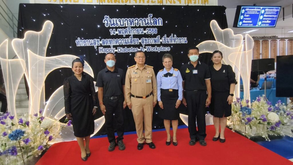 เมื่อ ๑๔ พ.ย.๖๘ พล.ร.ต.กิติศักดิ์ สายนุช ผอ.รพ.สมเด็จพระนางเจ้าสิริกิติ์ พร. เป็นประธานในพิธีเปิดการจัดกิจกรรมวันเบาหวานโลก ประจำปี ๒๕๖๘ จัดโดยกลุ่มงานอายุรเวชกรรม รพ.ฯ ร่วมกับคณะกรรมการโรคเบาหวาน (DM care team) รพ.ฯ ภายใต้แนวคิด “ทำงานสุข ลดทุกความเสี่ยง สุขภาพดี เริ่มที่ทำงาน” ณ อาคารผู้ป่วยนอก รพ.ฯ อ.สัตหีบ จว.ชลบุรี