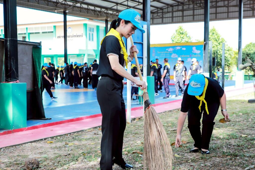 เมื่อ ๔ ธ.ค.๖๘ น.อ.หญิง ณัฐศุลี ศีลพิพัฒน์ หัวหน้ากลุ่มงานเวชศาสตร์ฟื้นฟูฯ ผู้แทน ผอ.รพ.สมเด็จพระนางเจ้าสิริกิติ์ พร. พร้อมด้วยกำลังพล ร่วมกิจกรรมจิตอาสาพัฒนาปรับภูมิทัศน์ เก็บขยะ ใบไม้ ตัดกิ่งไม้ ตัดหญ้า เนื่องในวันคล้ายวันพระบรมราชสมภพ พระบาทสมเด็จพระบรมชนกาธิเบศร มหาภูมิพลอดุลยเดชมหาราช บรมนาถบพิตร ณ โรงเรียนบ้านเขาชีจรรย์ ต.บางเสร่ อ.สัตหีบ จว.ชลบุรี / รพ.สมเด็จพระนางเจ้าสิริกิติ์ พร. / By ข่าวผู้บังคับบัญชา จำนวนคนดู : 0