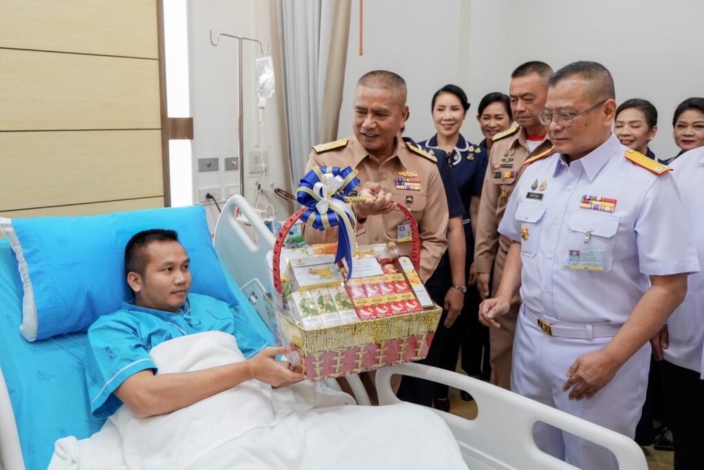 เมื่อ ๗ ม.ค.๖๙ พล.ร.ต.กิติศักดิ์ สายนุช ผอ.รพ.สมเด็จพระนางเจ้าสิริกิติ์ พร. ให้การต้อนรับ พล.ร.อ.ไพโรจน์ เฟื่องจันทร์ ผบ.ทร. พร้อมด้วย คุณอารียา เฟื่องจันทร์ นายกสมาคมภริยาทหารเรือและคณะนายทหารชั้นผู้ใหญ่ ร่วมเดินทางมาเยี่ยมเพื่อเป็นขวัญและกำลังใจให้แก่ จ.อ.เทอดพงษ์ ผมนะรา และ จ.อ.ภีมเดช ปูนจีนทหารกล้าผู้เสียสละตนเอง ปฏิบัติหน้าที่ด้วยความกล้าหาญและยึดมั่นในเกียรติยศศักดิ์ศรีของทหารไทย ซึ่งได้รับการส่งต่อเข้ารับการรักษา ณ รพ.สมเด็จพระนางเจ้าสิริกิติ์ พร. / รพ.สมเด็จพระนางเจ้าสิริกิติ์ พร. / By ข่าวผู้บังคับบัญชา จำนวนคนดู : 0