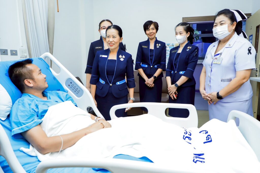 เมื่อ ๑๒ ม.ค.๖๙ น.อ.หญิง สุมาลี ไวยเนตร รอง ผอ.รพ.สมเด็จพระนางเจ้าสิริกิติ์ พร. ฝ่ายการพยาบาล ให้การต้อนรับ คุณนันทนา ปาณโสภณ ประธานชมรมภริยากองเรือยุทธการ พร้อมด้วย คณะกรรมการบริหารชมรมภริยา กร. เข้าเยี่ยมและให้กำลังใจแก่ จ่าเอก เทอดพงษ์ ผมนะรา ทหารกล้าผู้ปกป้องอธิปไตยไทย ทหารกล้าผู้เสียสละตนเอง ปฏิบัติหน้าที่ด้วยความกล้าหาญและยึดมั่นในเกียรติยศศักดิ์ศรีของทหารไทย ซึ่งได้รับการส่งต่อเข้ารับการรักษา ณ รพ.สมเด็จพระนางเจ้าสิริกิติ์ พร. / รพ.สมเด็จพระนางเจ้าสิริกิติ์ พร. / By ข่าวผู้บังคับบัญชา จำนวนคนดู : 0