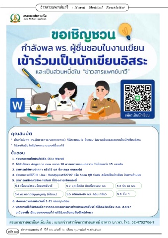 7. บทความที่ได้รับคัดเลือกจากกองบรรณาธิการข่าวสารแพทย์นาวี ที่ได้ลงในเดือน ก.พ.-ส.ค.67