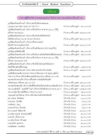-สมาคมภริยาทหารเรือ บริจาค เครื่องฟื้นคืนคลื่นหัวใจด้วยไฟฟ้าแบบอัตโนมัติ (AED) จ�านวน ๑ เครื่อง มูลค่า ๗๕,๐๐๐ บาท