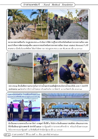 หมวดเวชกรรมป้องกัน รพ.ฐท.พง.ทรภ.๓ ด�าเนินการให้ความรู้ในการป้องกันโรคอันตรายจากความร้อน และ