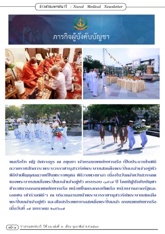 หน้า ๒ ข่าวสารแพทย์นาวี ปีที่ ๖๖ เล่มที่ ๒ เดือน กุมภาพันธ์ พ.ศ.๒๕๖๗