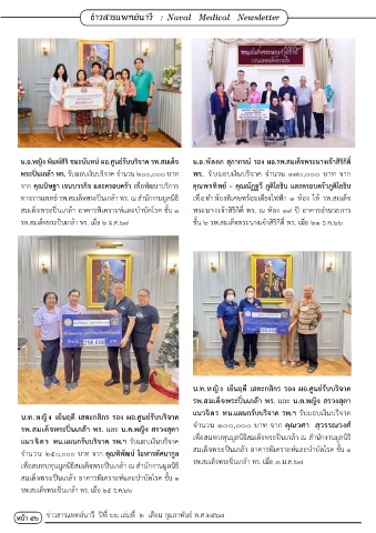 รพ.สมเด็จพระปิ่นเกล้า พร. และ น.ต.หญิง สรวงสุดา จ�านวน ๑๐๐,๐๐๐ บาท จาก คุณวศา สุวรรณวงศ์