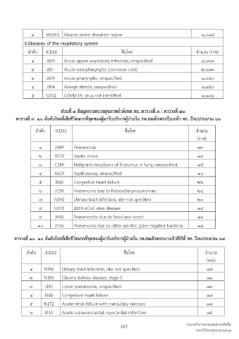 ตารางที่ ๙ ๑๐ อันดับโรคที่เสียชื่ีวิตมากที่สุดของผูู้้มารับบริการผูู้้ป่วยใน รพ.สมเด็จพระป่�นเกล้า พร. ปีงบประมาณ ๖๖