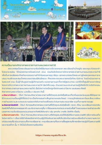 จิติอาสำาพระราชที่านติามั่แนวิพระราชด้ำาริ เป็นไปอยู่�างติ�อเนื�องถ่กติ้องติามั่พระราโชบัายู่ และสำมั่พระเก่ยู่รติิ