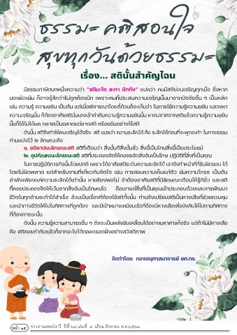 มีีธรรมีภาษิิตบทหนึ่่�งความีว่า “สติิมะโติ สะทา ภััททัง” แปลว่า คนึ่มีีสติย่่อมีเจริญทุกเมี่�อ ซึ่่�งหาก