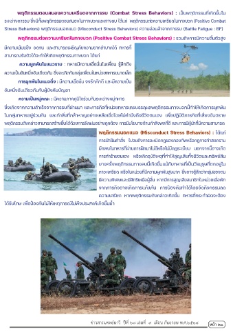 พฤติิกรรมติอบสนองความเครียดจากการรบ (Combat Stress Behaviors) : เป็็นพฤติิกรรมที่่�เกิดขึ้้�นใน