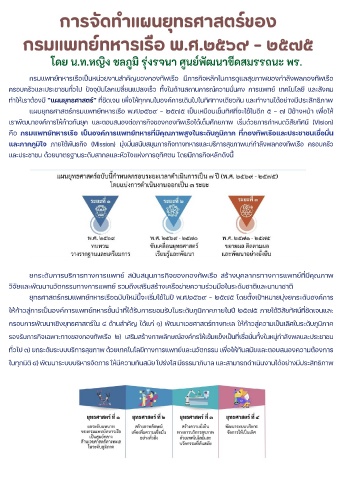 ย์ุทธิศาสำต้ร์กรมแพทย์์ทหารเรือฉบับใหม่นี�จะเริ�มใช้ในป็ี พ.ศ.๒๕๖๙ – ๒๕๗๕ โดูย์ต้ั�งเป็้าหมาย์มุ่งย์กระดูับองคั์การ