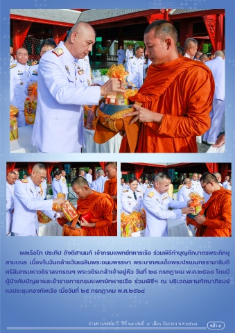 พล่เรือโท ปีระท่ปี ตังติสานนท์ เจ�ากรมแพทย์์ทหารเรือ ร่วมพิธ่ทำาบัุญตักบัาตรพระภิกษุ