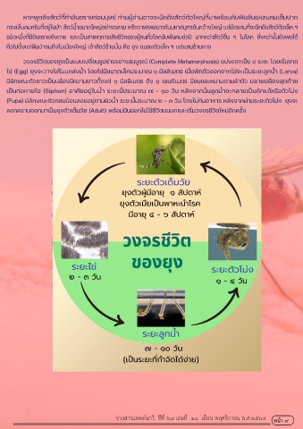 ลอกคราบัออกมาเป็นยุงติ่วเติ็มว่ย (Adult) พึร้อมบัินออกไปใช้ช่วิติบันบักและเริ�มวงจรช่วิติให้ม่อ่กคร่�ง