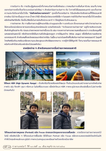 ใช่�โหมดี HDR (High Dynamic Range) : เป็นฟัังก์ช่นท่�ช่วยปร่บัแสงให้้สมดุ้ล ท่�งส่วนมืด้และส่วนสว่างเห้มาะมากสำาห้ร่บัถ่าย