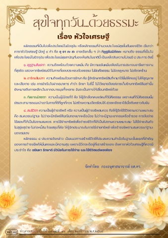 ท่�สุจริติ แสวงห้าทร่พึย์สมบั่ติิในทางท่�ชอบัประกอบัด้้วยธิรรม ไม่ผิด้ศ่ลธิรรม ไม่ผิด้กฎห้มาย ไม่เก่ยจคร้าน