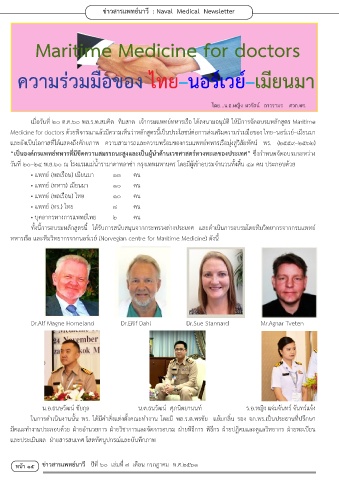 ทหารเรือ และทีมวิทยากรจากนอร์เวย์ (Norvegian centre for Maritime Medicine) ดังนี้
