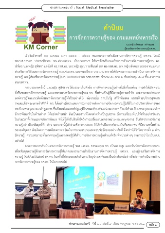 ความรู้ และผู้ส่งเสริมการจัดการความรู้ (KM.Facilitator) ของ นขต.ยศ.ทร. จำานวน ๕๐ นาย ณ ห้องประชุม ๕๐๔ ชั้น ๕ อาคาร