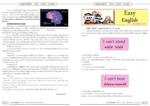 ติดตามต่อฉบับหน้า รูปแบบประโยค คือ I can’t bear + คำานามหรือกริยาเติม –ing หรือ กริยาช่องที่ 1