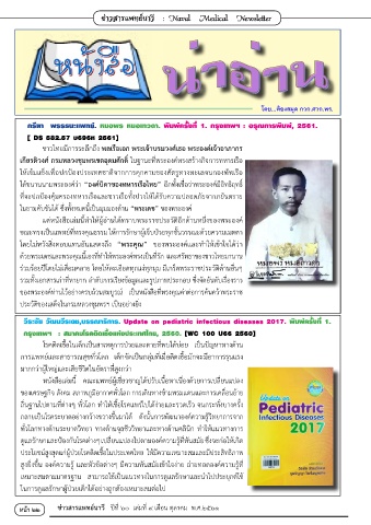 หน้า ๒๒ ข่าวสารแพทย์นาวี ปีที่ ๖๐ เล่มที่ ๙ เดือน ตุลาคม พ.ศ.๒๕๖๑