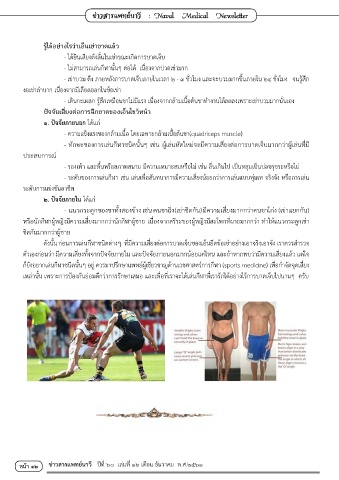 - เดินกะเผลก รู้สึกเหมือนขาไม่มีแรง เนื่องจากกล้ามเนื้อต้นขาท�างานได้ลดลงเพราะเข่าบวมมากนั่นเอง