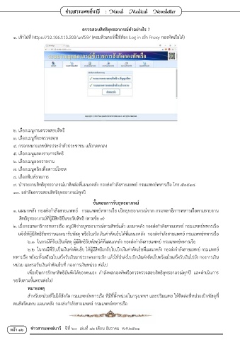 ๙. น�ารายงานสิทธิยุทธอาภรณ์มาติดต่อที่แผนกคลัง กองส่งก�าลังสายแพทย์ กรมแพทย์ทหารเรือ โทร.๕๒๕๑๘
