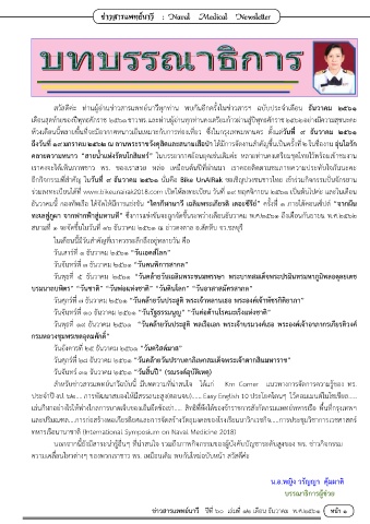 สวัสดีค่ะ ท่านผู้อ่านข่าวสารแพทย์นาวีทุกท่าน พบกันอีกครั้งในข่าวสารฯ ฉบับประจ�าเดือน ธันวาคม ๒๕๖๑