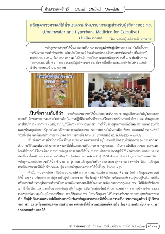 หลักสูตรเวชศาสตร์ใต้น�้าและความดันบรรยากาศสูงส�าหรับผู้บริหารของ พร.
