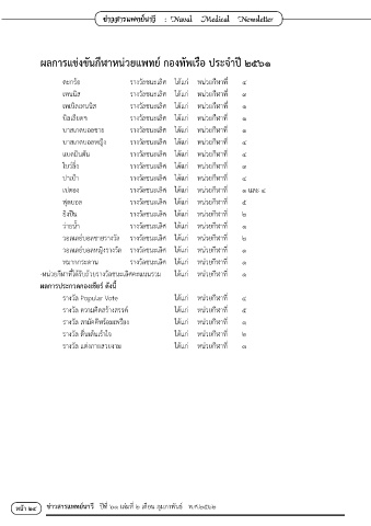 ผลการแข่งขันกีฬาหน่วยแพทย์ กองทัพเรือ ประจ�าปี ๒๕๖๑