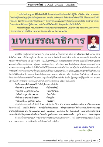ส�าหรับข่าวสารแพทย์นาวีฉบับนี้ มีบทความที่น่าสนใจ ได้แก่ KM Corner ผลลัพธ์การพัฒนาภายใต้กระบวนการ
