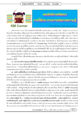 บทความ KM corner ในข่าวสารแพทย์นาวีฉบับเดือน ตุลาคม ๒๕๖๑ น.อ.หญิง ธนพร แย้มสุดา ผอ.กวก.ศวก.พร.