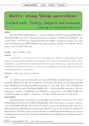ลักษณะของอาการของผู้ป่วย ความซับซ้อนในการตรวจวินิจฉัยฟันร้าว และแผนการรักษา บทความนี้จัดท�าขึ้นเพื่อทบทวน